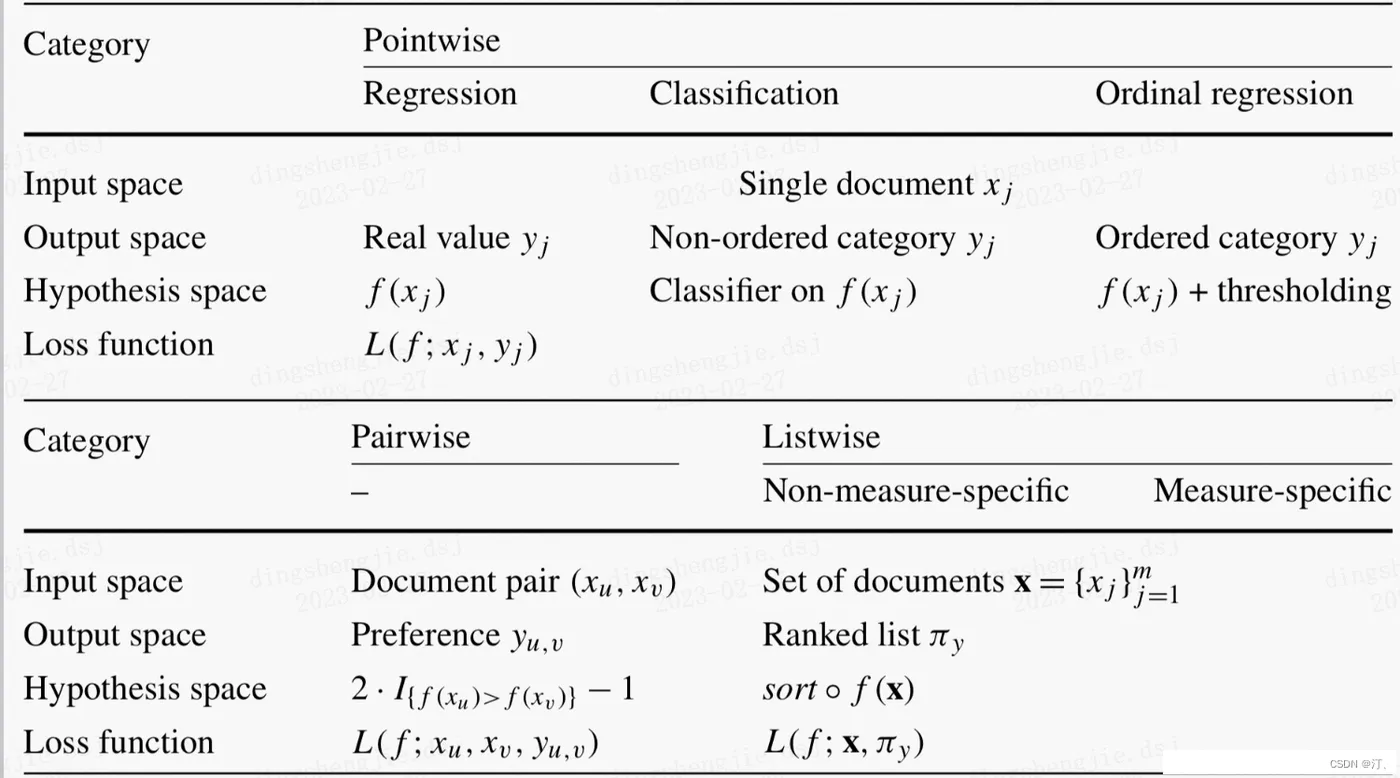 Pointwise:输入两个文本和一个标签,可看作为一个分类问题,即判断输入的两个文本是否匹配。Pairwise:输入为三个文本,分别为Query以及对应的正样本和负样本,该训练方式考虑到了文本之间的相对顺序。单塔:先将输入文本合并,然后输入到单一的神经网络模型。双塔:对输入文本分别进行编码成固定长度的向量,通过文本的表示向量进行交互计算得到文本之间的关系。