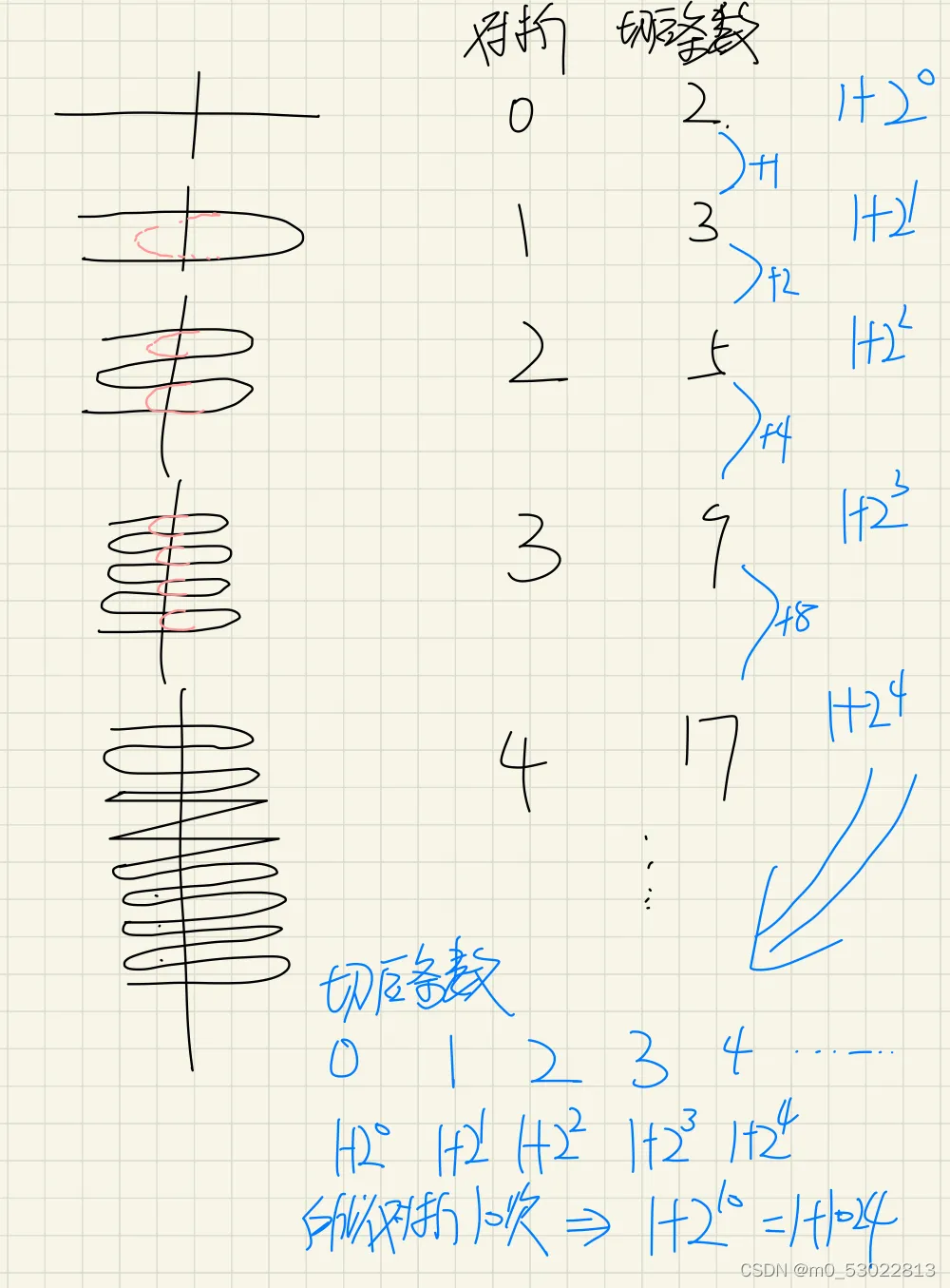 那么,连续对折10次,中间切一刀,会得到多少面条呢?