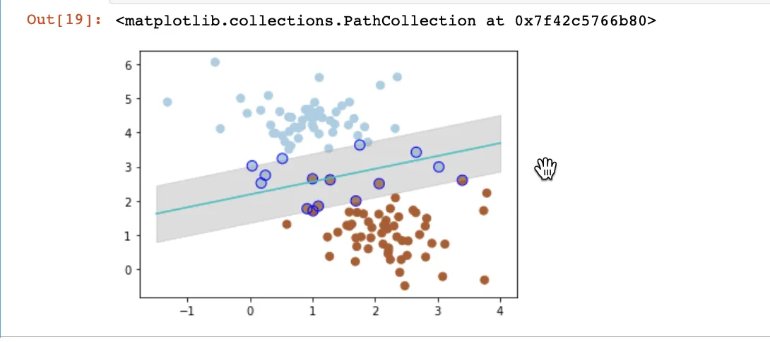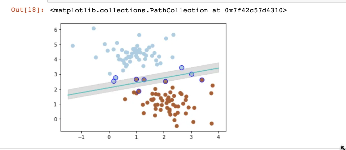 结果显而易见,且图中三个蓝色圆圈即为支持向量,支持向量机提供了在众多可能的分类器之间进行选择的原则,从而确保对未知数据集具有更高的泛化性。