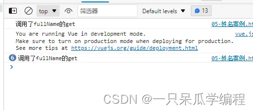 computed: { fullName() { console.log("调用了fullName的get") return this.firstName+"-"+this.lastName } }