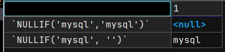 SELECT NULLIF('mysql','mysql'),NULLIF('mysql', '') FROM dual;