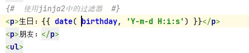 变量|过滤器:参数,如:在Django自带的模板中date过滤器的写法为birthday|date:'Y-m-d H:i:s',在jinja2中直接写函数形式date(birthday) - jinja2中不存在forloop,使用的为loop,jinja2中的loop: