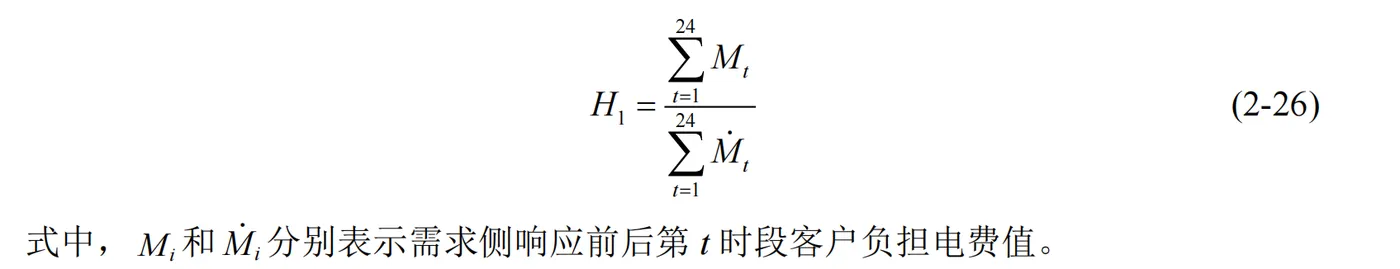 某些时段过高的价格会导致客户支出过高,所以需要考虑客户负担的合理性,即在应用需求侧响应策略后客户所需负担的总费用不应升高。据此,定义客户支出合理性指标 H1,如式(2-26):