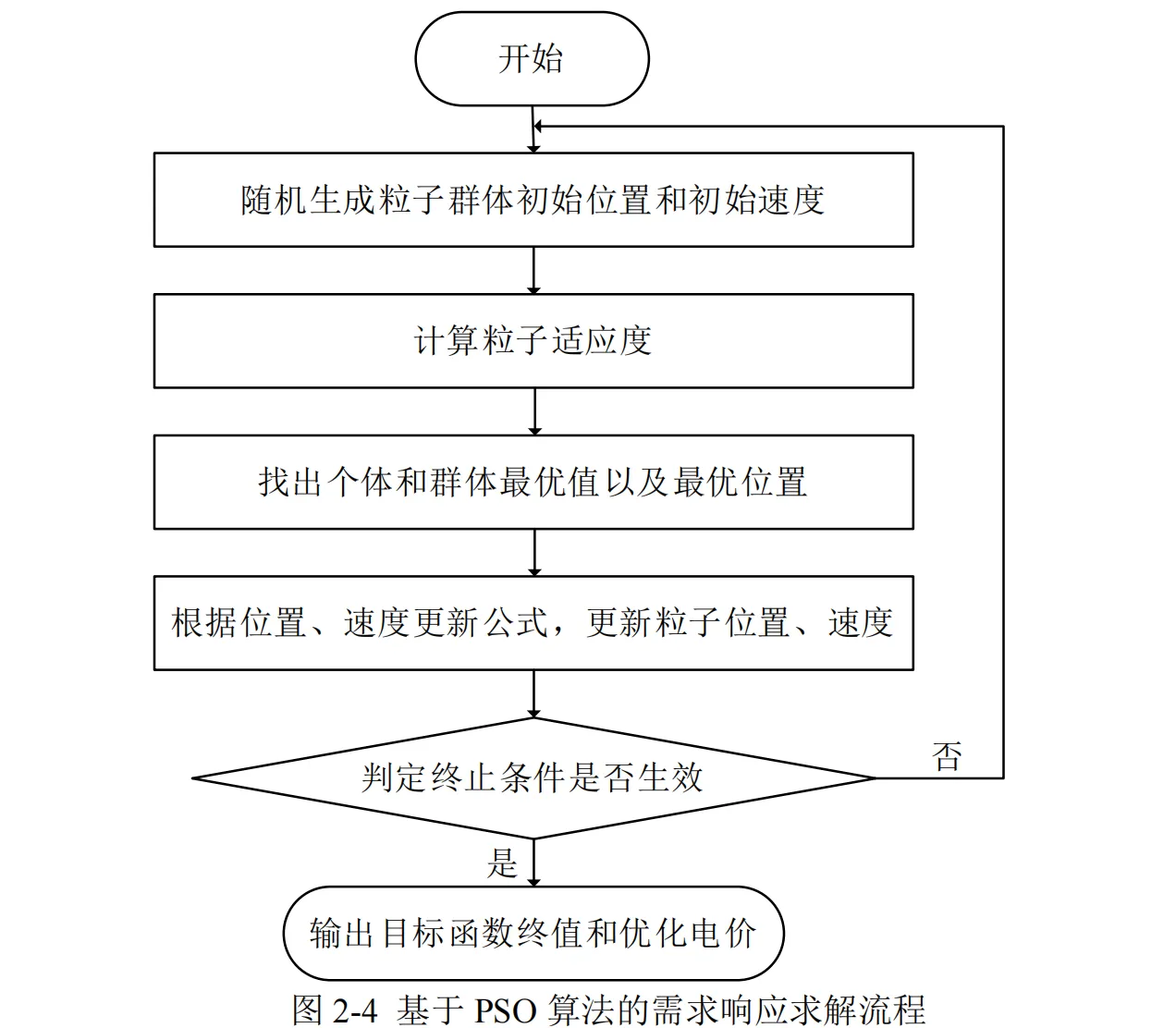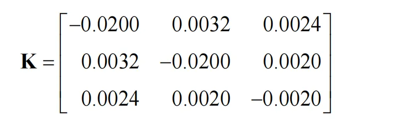 本文也是粒子群算法进行求解,对于需求侧响应后负荷的变化,可根据电价伸缩系数和式(2-21)~式(2-22)计算得出。伸缩系数在工程使用时需要结合历史运行数据和当地情况并由式(2-17)~式(2-19) 计算得出。本文选择伸缩系数矩阵如式(2-37)