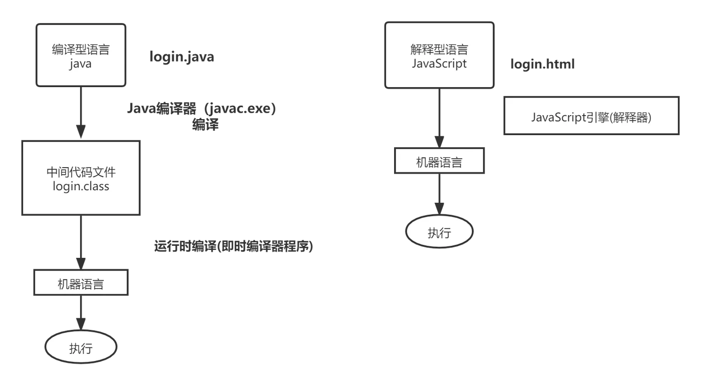 - 编译语言:首先先把所有菜上齐了,才能吃饭