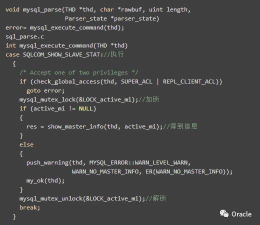 之后所有show slave status请求也都会被阻塞在LOCK_active_mi锁处。