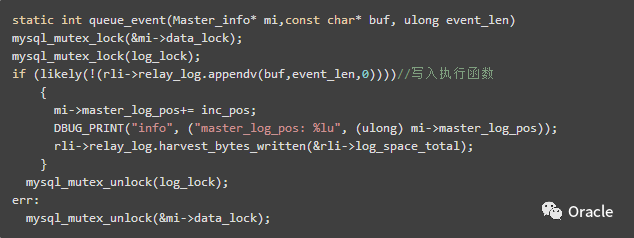 当一个新操作被接收到slave io线程后,如果这时候磁盘写满了,这个写入操作就会被阻塞,然后等待,直到磁盘有空间之后继续写入,这个操作中,会持有mi->data_lock锁,只有操作完成或者操作失败后,这个锁才会被释放,恰好,磁盘满不属于错误,于是操作阻塞,该线程会一直持有mi->data_lock锁。