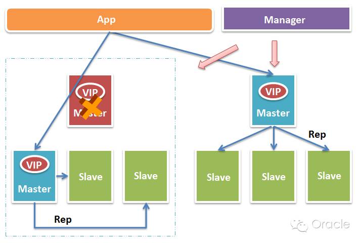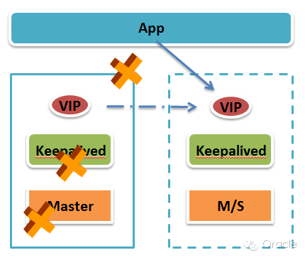 Keepalived 进行 HA 切换,VIP 将会漂移到备机上,应用连接都是通过 VIP 接口来进行,所以可以说对业务是透明的操作。