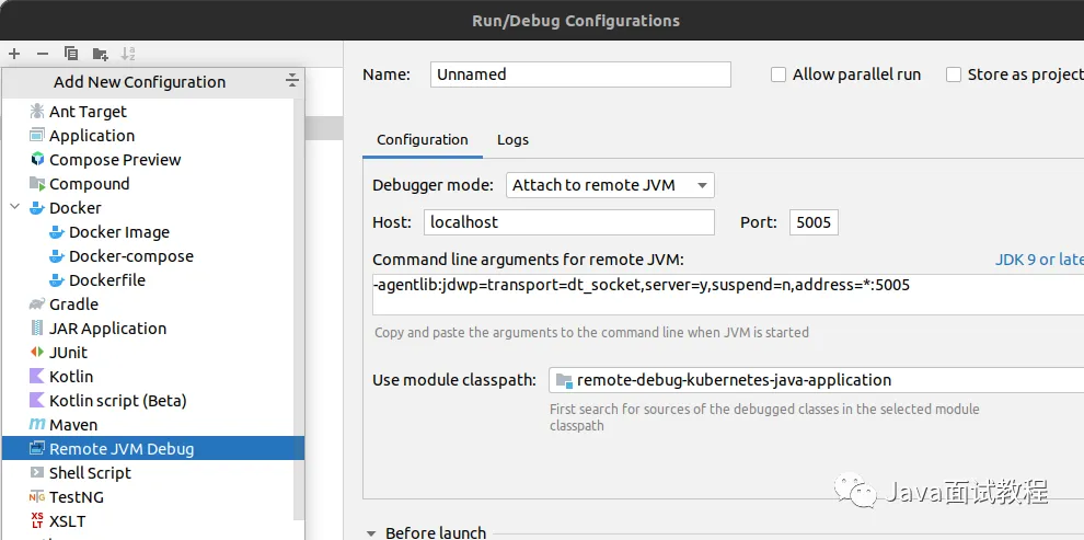 部署应用程序后,需要将 5005 端口进行转发以附加我们的调试器。