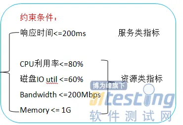 约束条件的存在主要是作为线上压测停止的信号,常常会包括业务指标和资源指标。其中只要有一项指标达到临界值,则停止压测将当前容量指标的值作为集群的最大处理能力,例如某项服务质量要求响应时间不超过100ms,那当响应时间达到临界值时,尽管其它指标并没有达到极限但是也把此时作为集群最大处理能力。因此服务指标的选取原则:1)业务需求 2)资源使用瓶颈。一则保证产品的服务质量,二来保证系统的安全。