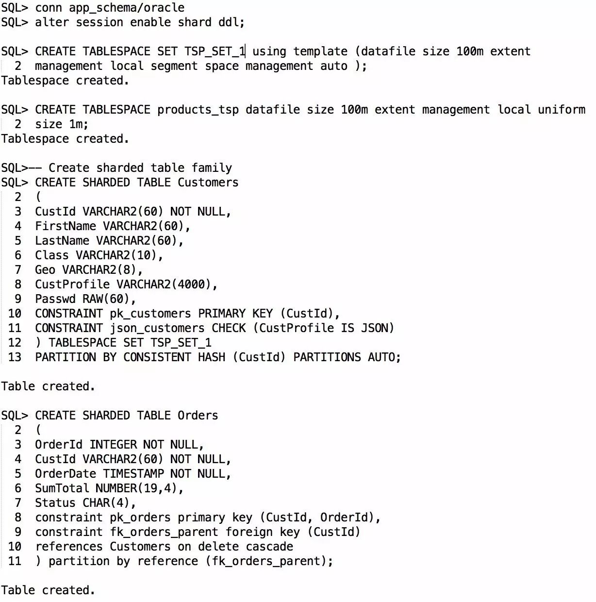 (四)建立应用用户,利用应用用户建立sharded table和duplicated table: