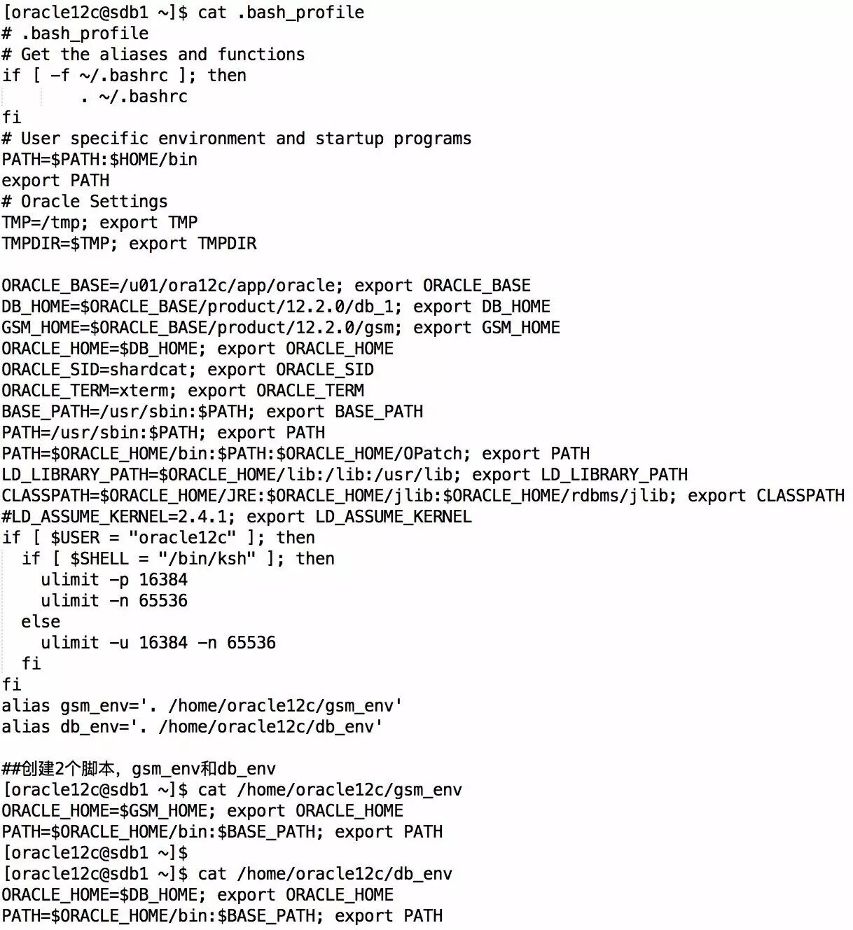 目的是因为shardcat和gds都安装在一个主机上,同一个oracle用户,不同ORACLE_HOME,所以建立环境变量的脚本,会比较容易在database环境和gsm环境之间切换。