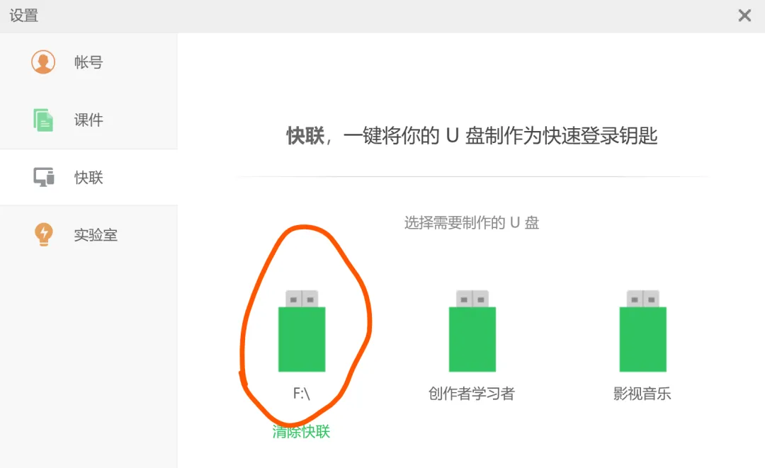当再进入希沃的登录页面,只要你插上U盘,希沃便会自动登录上你的账号。(还不试试?)