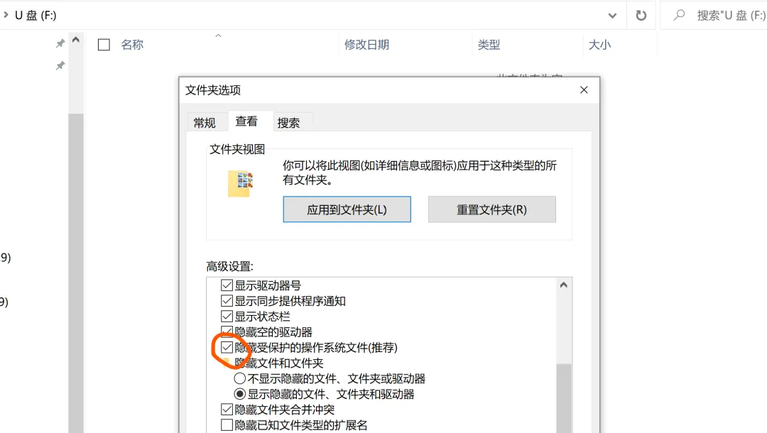把它前面的勾去掉,就能看到U盘中的隐藏文件啦!