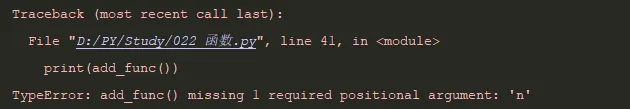 # 示例1 无参 def test_func(): print('我是:Python当打之年') # 示例2 有参 def test_func(str1): print(str1) # 示例3 有参 def test_func(a, b): return a+b