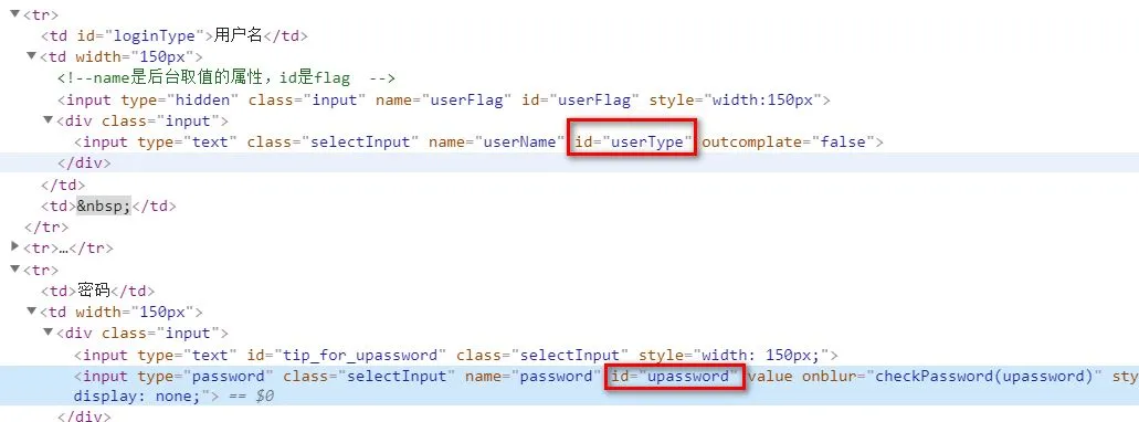 全局搜索参数 userType 或者 upassword。因为 JS 代码一般是根据输入框的 id 标签取相应的值,然后做加密!