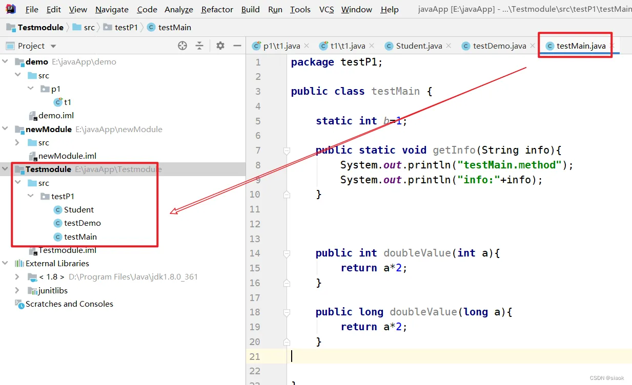 public class testMain { static int b=1; public static void getInfo(String info){ System.out.println("testMain.method"); System.out.println("info:"+info); } public int doubleValue(int a){ return a*2; } public long doubleValue(long a){ return a*2; } }