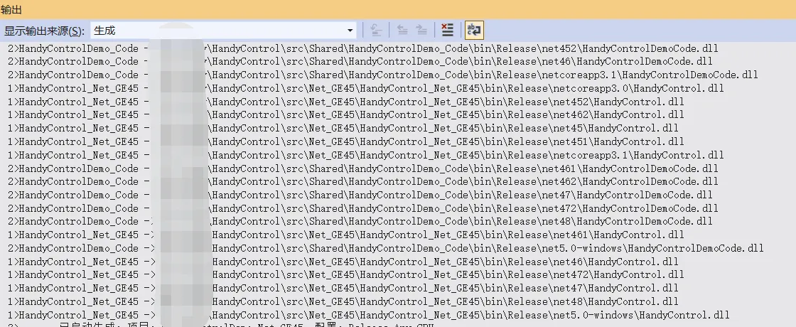 至此,源码编译就算完成了,剩下的就是依据依据当前项目目标版本引用对应的HandyControl.dll版本