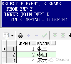 2、对EMP中的DEPTNO与DEPT表中的DEPTNO进行内关联;