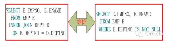 在关联条件存在主外键关系约束的前提下,如下两个SQL是等价的: