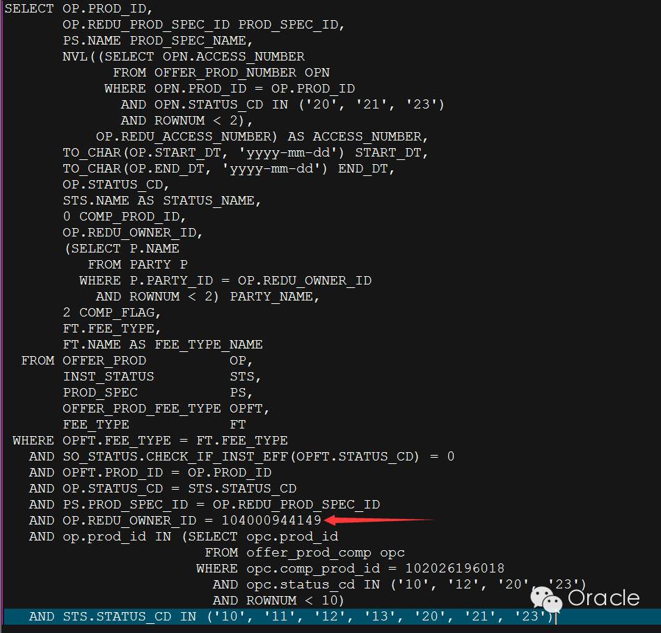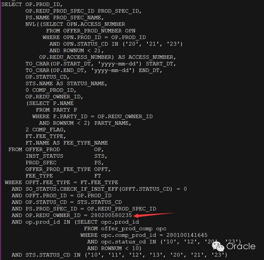 下面继续查看 SQL 部分,可以发现一个重要的信息就是在子查询中存在 rownum<10,也就意味子查询最多返回10行。在 OLTP 系统中,存在一个表最后最多返回10行的情况,这里也就大概想到了用子查询做去驱动表了,如果执行计划中,没有用子查询做驱动表,那么很有肯能执行计划就是错误的,那么这里的自己认为的驱动表与之前根据 SQL 前部分猜测出来当前执行的驱动表(OP)不一样。
