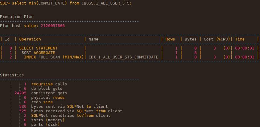 4. 即使一个分支块下的叶子块的记录被完全清空,分支块并不会更新或者做任何标记来说明该叶子块里的记录被完全删除,下次定位时仍然会扫描这些空的叶子块。如对一个高度为3的索引做一个min/max操作,在索引没有任何碎片的情况下,只需要3次逻辑读即可完成,分别为1个root,1个branch,1个 leaf。