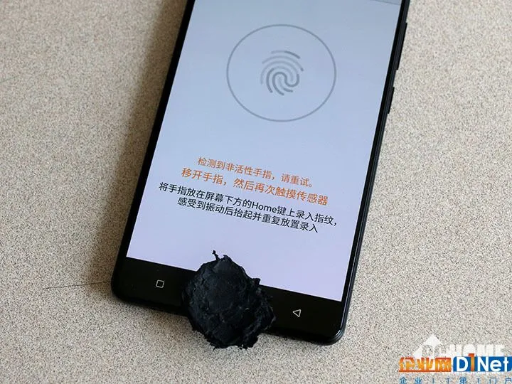 金立M6S Plus使用的则是更为先进的活体指纹识别方式,它除了综合光学与电容传感的指纹识别方式之外,还会通过电磁波反射来检测人体的血液流动和心率特征,导电硅胶在这里也就失去了作用,它虽说可以导电,但欠缺生物特征,是不能通过活体检测的。若是在金立M6S Plus上使用假指纹的话,那么系统就会告诉你检测到非活性指纹,这个指纹是根本不能进行录入或识别的。