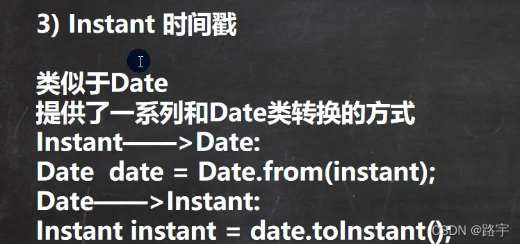public class Instant_ { public static void main(String[] args) { //Instant时间戳 Instant instant = Instant.now(); System.out.println(instant); //通过Date.from()方法 可以把Instant转成Date Date date = Date.from(instant); System.out.println(date); //通过date的toInstant()可以把date转换成Instant对象 Instant instant1 = date.toInstant(); System.out.println(instant1); } }