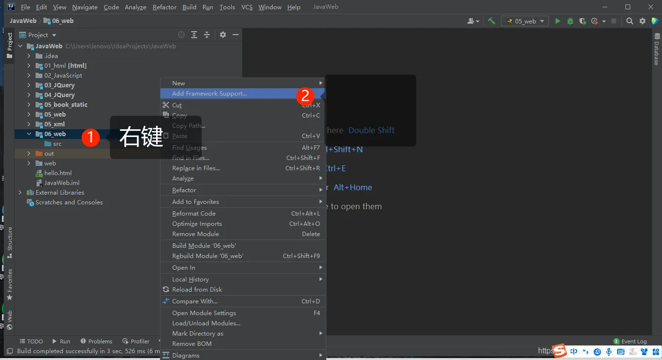 1 右键06_web ——》Add Framework Support…