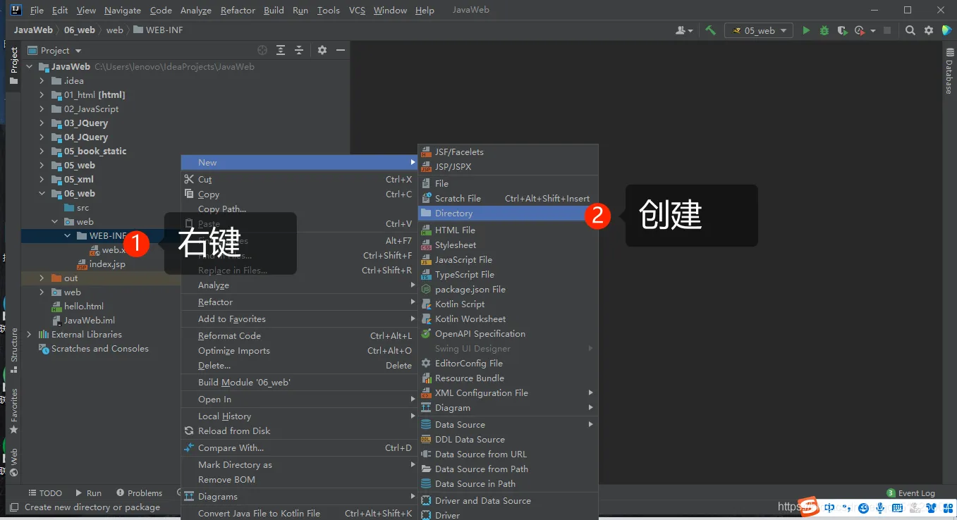 1 右键WEB-INF ——》New ——》Directory