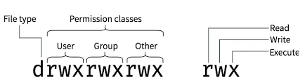 在 Linux 中,文件权限用一串字符来表示,共有 10 个字符,可以分为四个部分:文件类型、用户权限、组权限和其他权限。