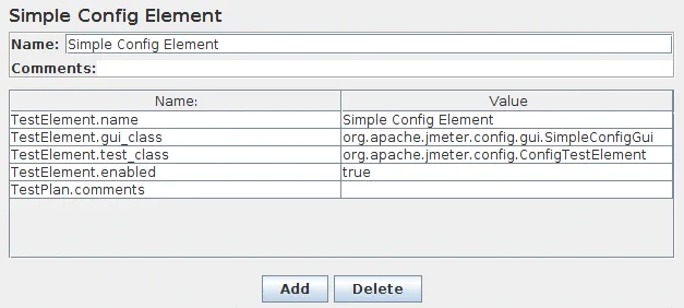 The Simple Config Element lets you add or override arbitrary values in samplers. You can choose the name of the value and the value itself. Although some adventurous users might find a use for this element, it's here primarily for developers as a basic GUI that they can use while developing new JMeter components. Control Panel