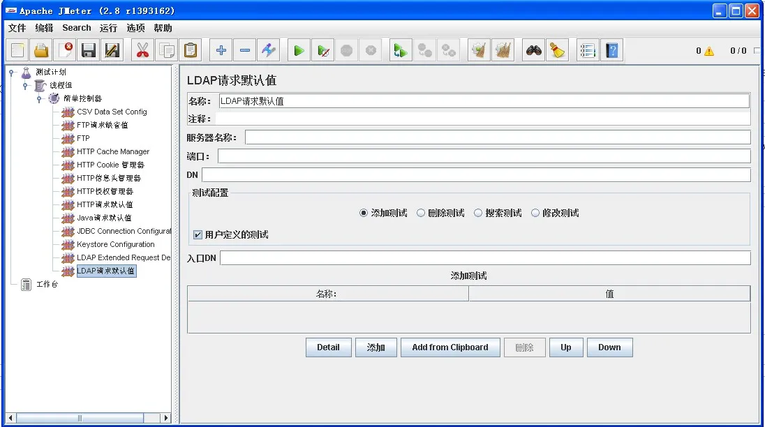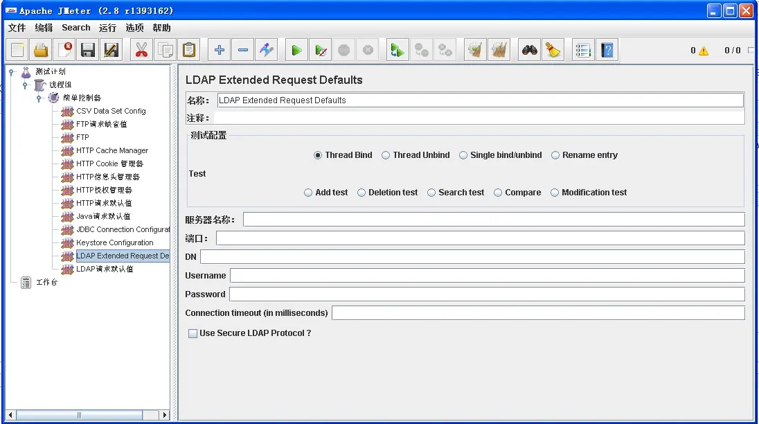 可以添加一个config element中的LDAP Request Defaults用于控制一些共享默认值.
