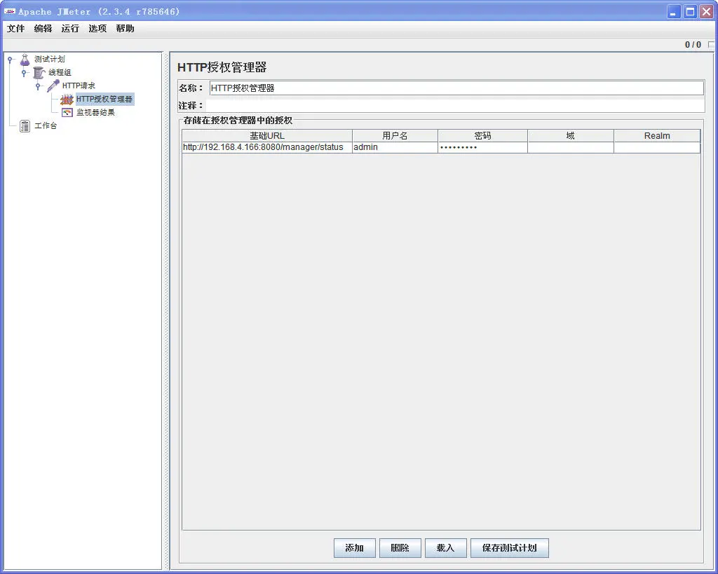 | Base URL | A partial or complete URL that matches one or more HTTP Request URLs. As an example, say you specify a Base URL of "http://jmeter.apache.org/restricted/" with a username of "jmeter" and a password of "jmeter". If you send an HTTP request to the URL "http://jmeter.apache.org/restricted/ant/myPage.html", the Authorization Manager sends the login information for the user named, "jmeter". | Yes | |||||||
