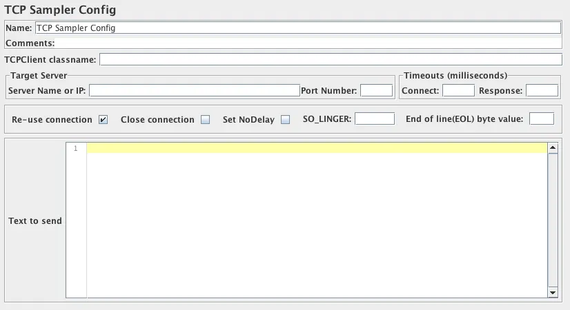 The TCP Sampler Config provides default data for the TCP Sampler Control Panel