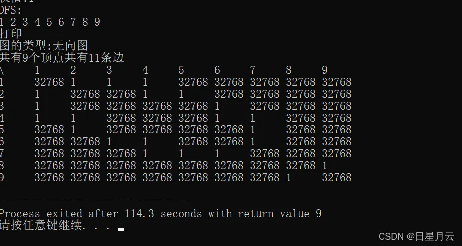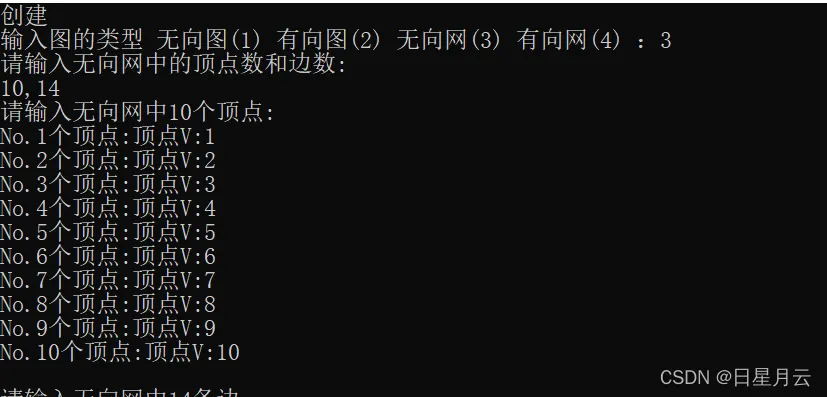 void main(){ printf("创建\n"); AdjList* G=(AdjList*)malloc(sizeof(AdjList)); printf("输入图的类型 "); printf("无向图(1) "); printf("有向图(2) "); printf("无向网(3) "); printf("有向网(4) :"); scanf("%d",&G->t); Create(G); printf("BFS:\n"); // int v0=1; // BFSAdjList(*G,v0); TraverseG(*G); printf("\n"); printf("打印\n"); Printf(G); }