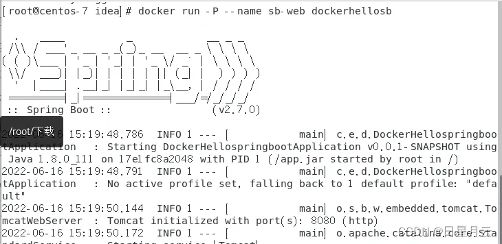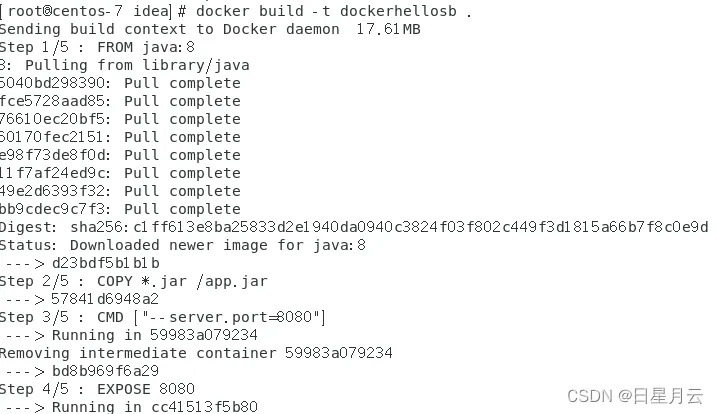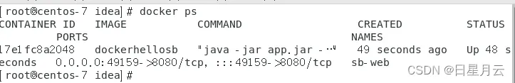 [root@centos-7 idea]# ls Dockerfile docker-hellospringboot-0.0.1-SNAPSHOT.jar
