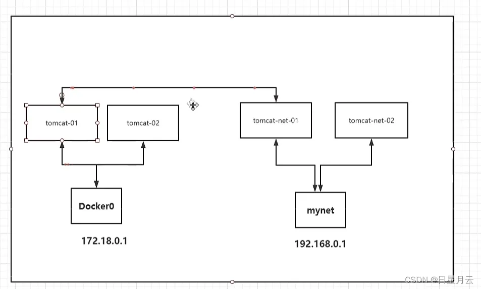 # 要将tomcat01 连通 tomcat—net-01 ,连通就是将 tomcat01加到 mynet网络 # 一个容器两个ip(tomcat01)