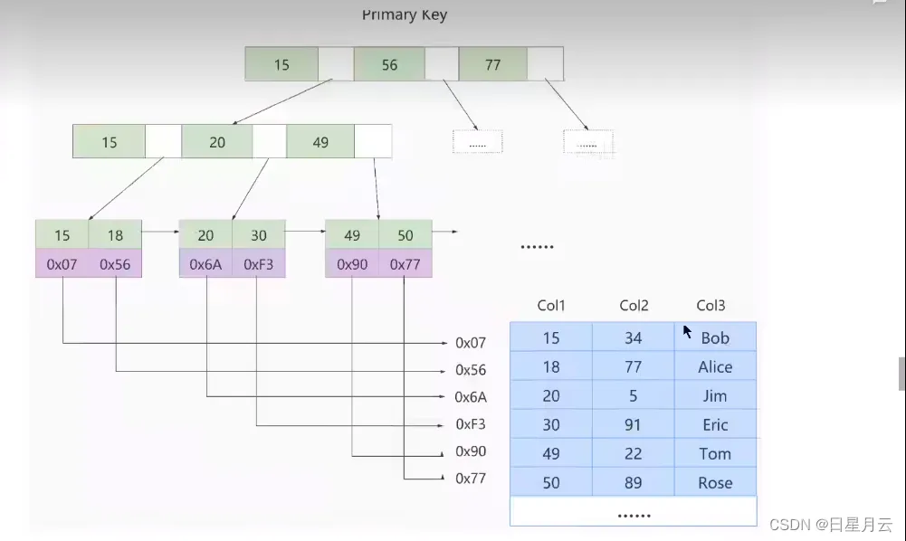 如果对每个字段都进行通过聚簇索引来排序,那耗得内存也太大了。所有只需要用一个关键字来作为聚簇索引进OK了,用来排序其他字段的数据项节点执行存储其字段及关键字,也就是二级索引,再通过回表,就可操作了。