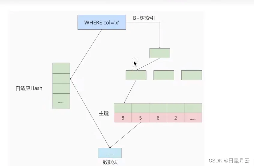 如果某个数据经常被访问,当满足一定条件的时候(比如某个内容的查询数目超过某个值),就会将这个数据页的地址存放到Hash表中。这样下次查询的时候,就可以直接找到这个页面的所在位置。这样让B+树也具备了Hash索引的优点。