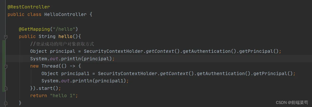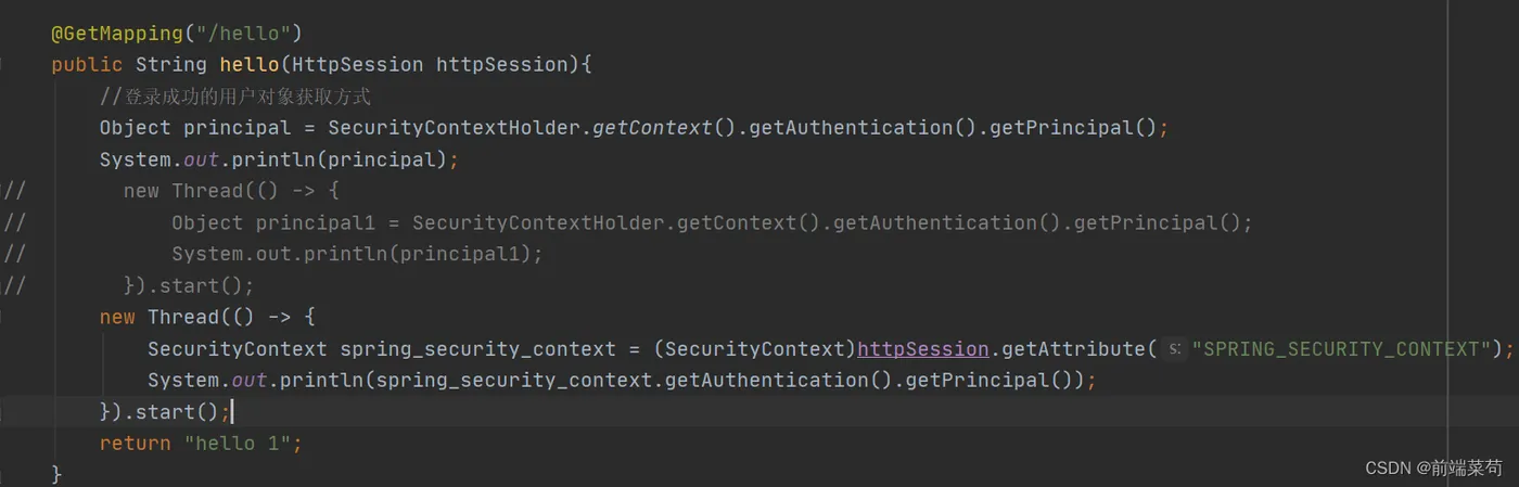 1.首先,前端发起一个登陆请求,这个请求会经过security 一系列的过滤器,其中有一个SecurityContextPersistenceFilter过滤器,主要用来处理当前用户信息。在用户登录成功后,自动将用户信息存入到SecurityContextHolder中。 SecurityContextHolder 的底层就是 ThreadLocal。