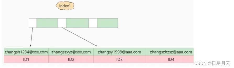 2.到主键上查到主键值是ID1的行,判断出email的值不是’ zhangssxyz@xxx.com ’,这行记录丢弃;