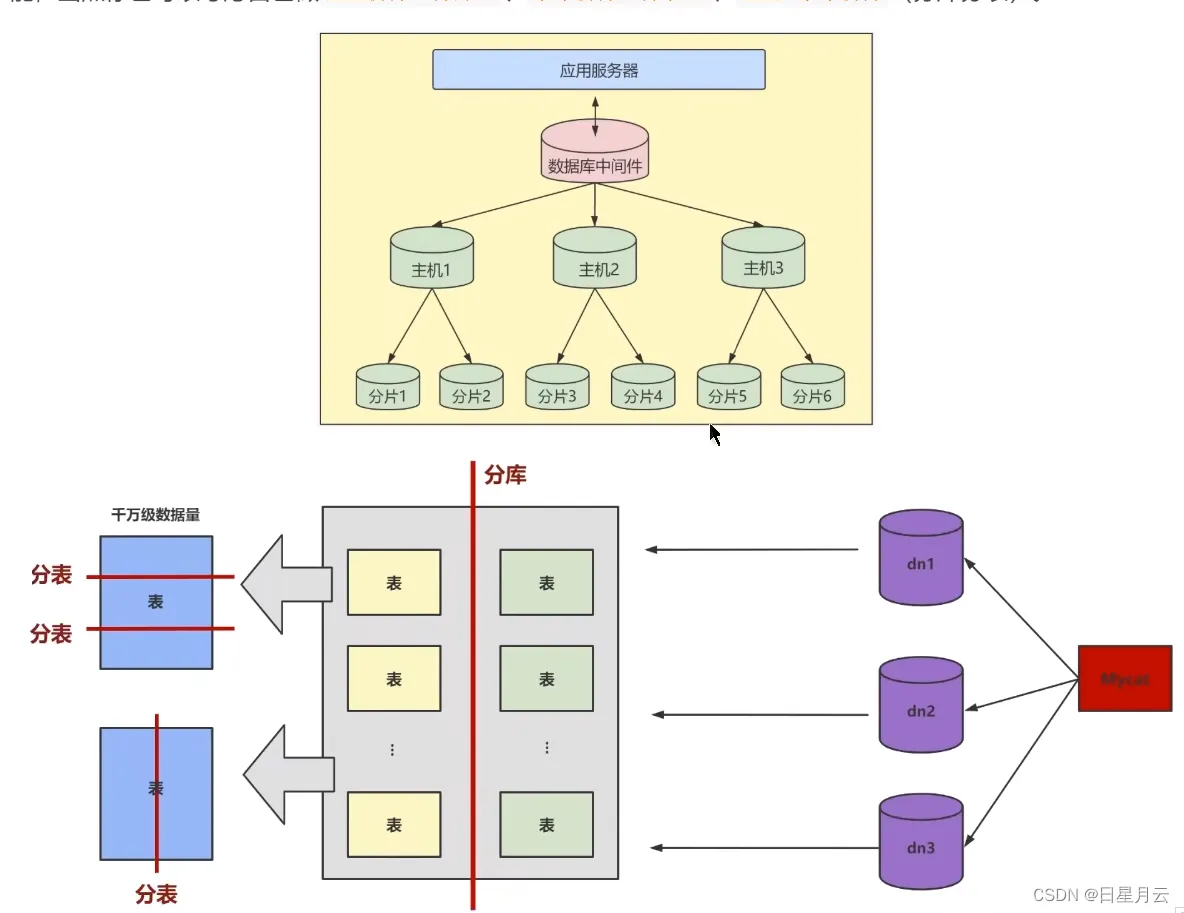 对数据库分库分表。当数据量级达到千万级以上时,有时候要把一个数据库切成多份,放到不同的数据库服务器上,减少对单一数据库服务器的访问压力。如果你使用的是 MySQL,就可以使用MySQL自带的分区表功能,当然你也可以考虑自己做垂直拆分(分库)、水平拆分(分表)、垂直+水平拆分(分库分表)