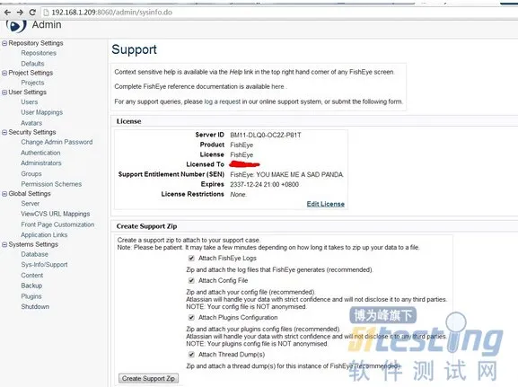 进入jira的管理员页面,点击源代码控制,点击fisheye configuration标签进行整合