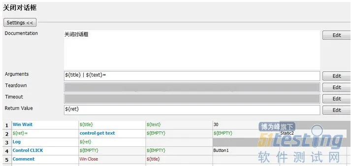 我做了个关闭对话框的关键字,方便重复调用。这个关键字实现的功能我基本上参考了confirmation,除了点击按钮,还会把提示信息返回,不过我没做choose cancel的部分。具体关键字的脚本如下: