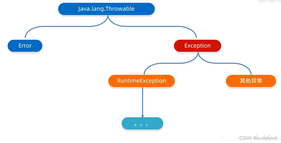 是表示程序正常运行过程中可能发生的异常的基类,也可以分为两种类型:checked exceptions(需要显式处理的异常)和 unchecked exceptions(不需要显式处理的异常)。Error