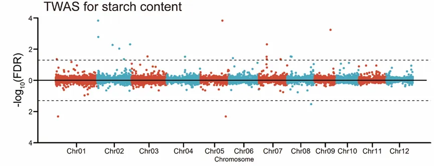 尽管eQTL区域的候选基因能够通过共表达和连锁不平衡来发现,但是构建全基因组的调控网络仍是难题。表型GWAS的QTL数量有限,相比之下,利用转录组表达数据和eQTL来识别候选基因更好,作者利用GWAS的数据结合转录组数据筛选候选基因。