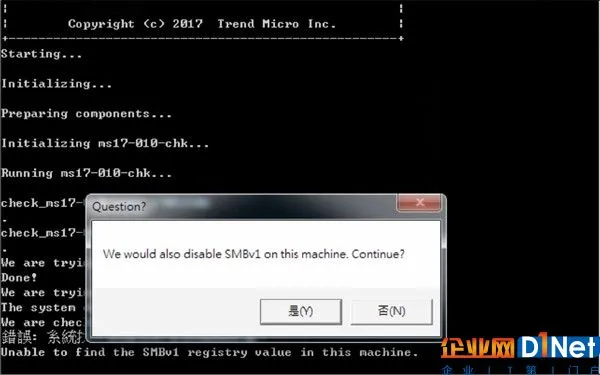 Trend Micro表示,此工具可以帮助Windows电脑用户检查是否存在MS17-010的漏洞,同时还能确认电脑上的SMB v1是否关闭。如检测为开启状态,用户便可以使用这款工具快速停用SMB v1。