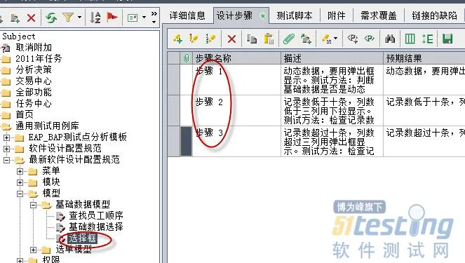 5、在“选择框”测试集中,会产生三个步骤,分别为“步骤1”、“步骤2”、“步骤1”的相关内容。